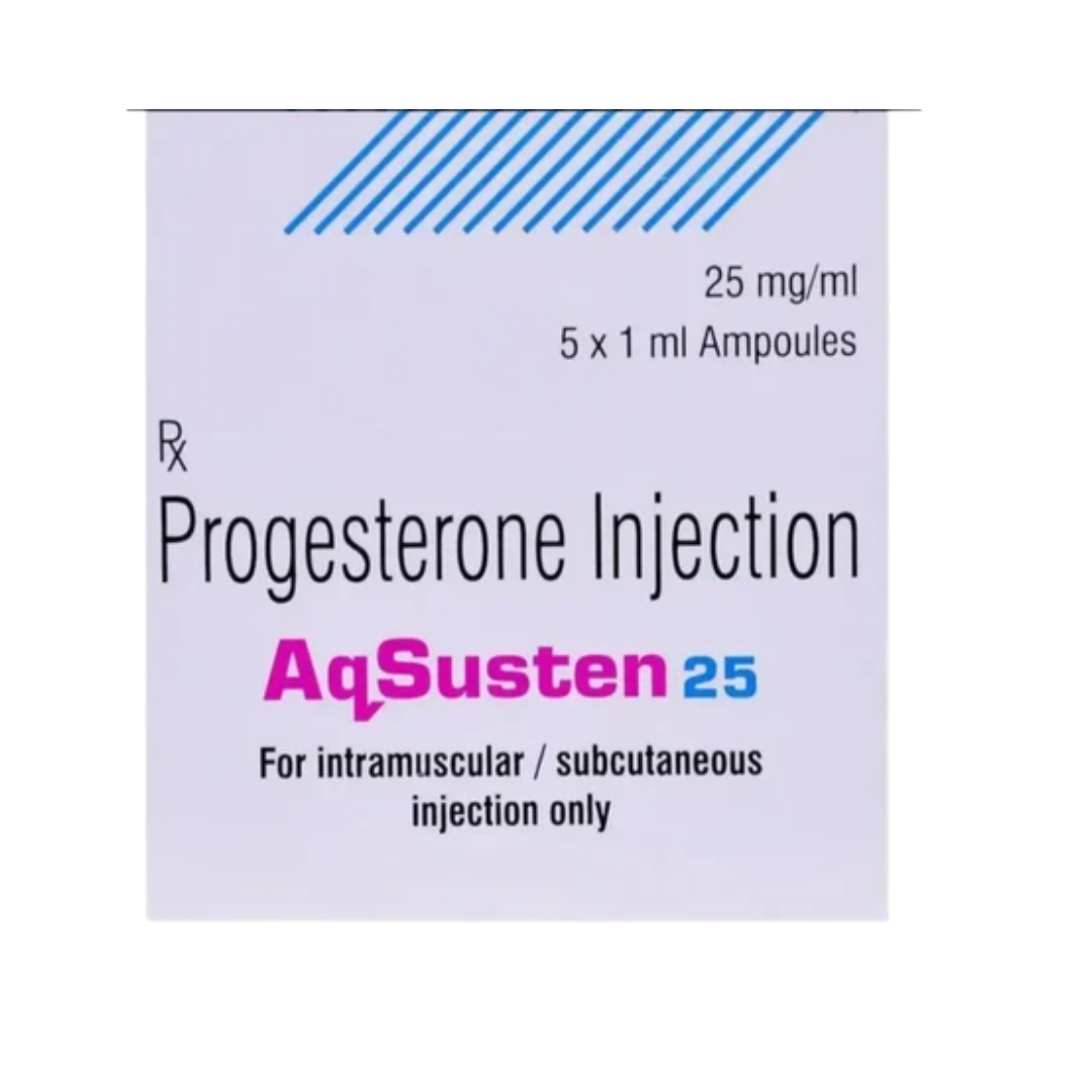 Aqsusten 25 Solution for Injection is a natural female hormone important for regulating ovulation (release of an egg from a woman’s ovary) and menstruation. It helps restore menstrual cycles in women whose periods have stopped. It is also used in the treatment of infertility.