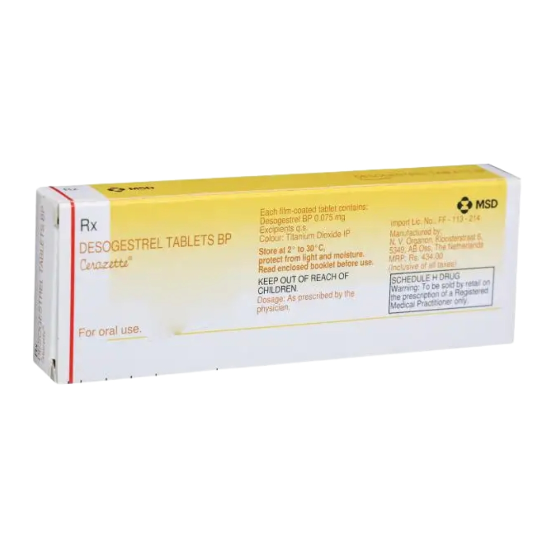 Cerazette Tablet can be taken with or without food, but take it at the same time to get the most benefit. It should be taken as your doctor’s advice. The doctor should guide the dose and how often you take it. Swallow the tablet whole with a glass of water. You should take this medicine for as long as it is prescribed for you. If you missed your dose and you are late by 12 hours in taking the missed dose, in that case, you must use a condom during intercourse for a period of 2 days.