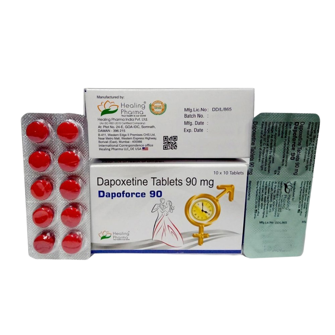Dapoforce 90mg Tablet is a prescription medication used for the treatment of premature ejaculation (PE) in adult men aged 18 to 64 years. It contains Dapoxetine, a selective serotonin reuptake inhibitor (SSRI) that increases serotonin levels in the brain, helping to improve control over ejaculation and extend the time before climax. Dapoforce 90mg is typically taken 1 to 3 hours before anticipated sexual activity and should not be used more than once in 24 hours. This medicine is effective in reducing performance anxiety and improving sexual satisfaction.