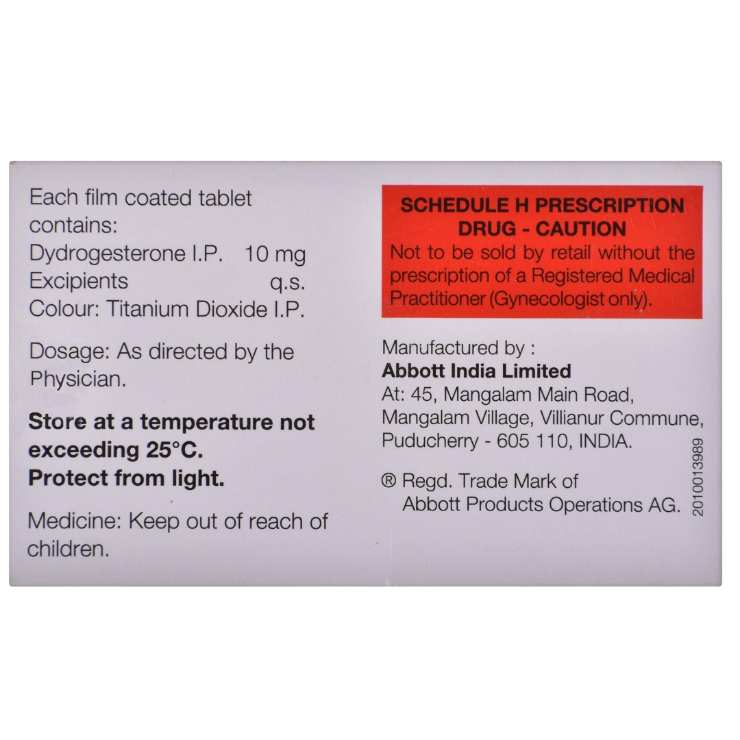 Duphaston 10mg Tablet is used to treat various conditions caused by progesterone deficiencies such as female infertility, pain during menstruation, premenstrual syndrome (PMS), endometriosis, abnormal uterine bleeding, and miscarriage. It also used a hormone replacement therapy.