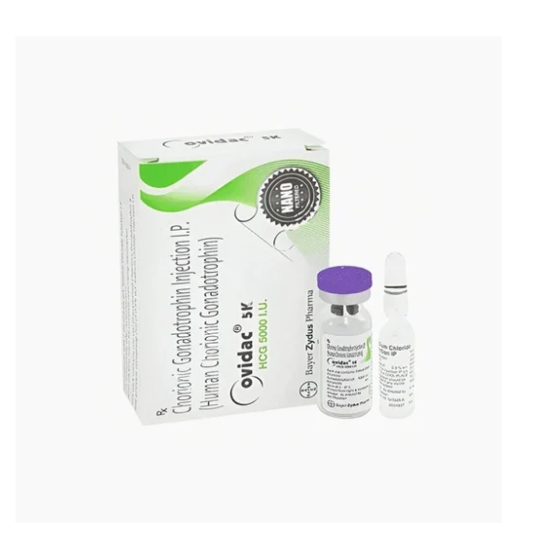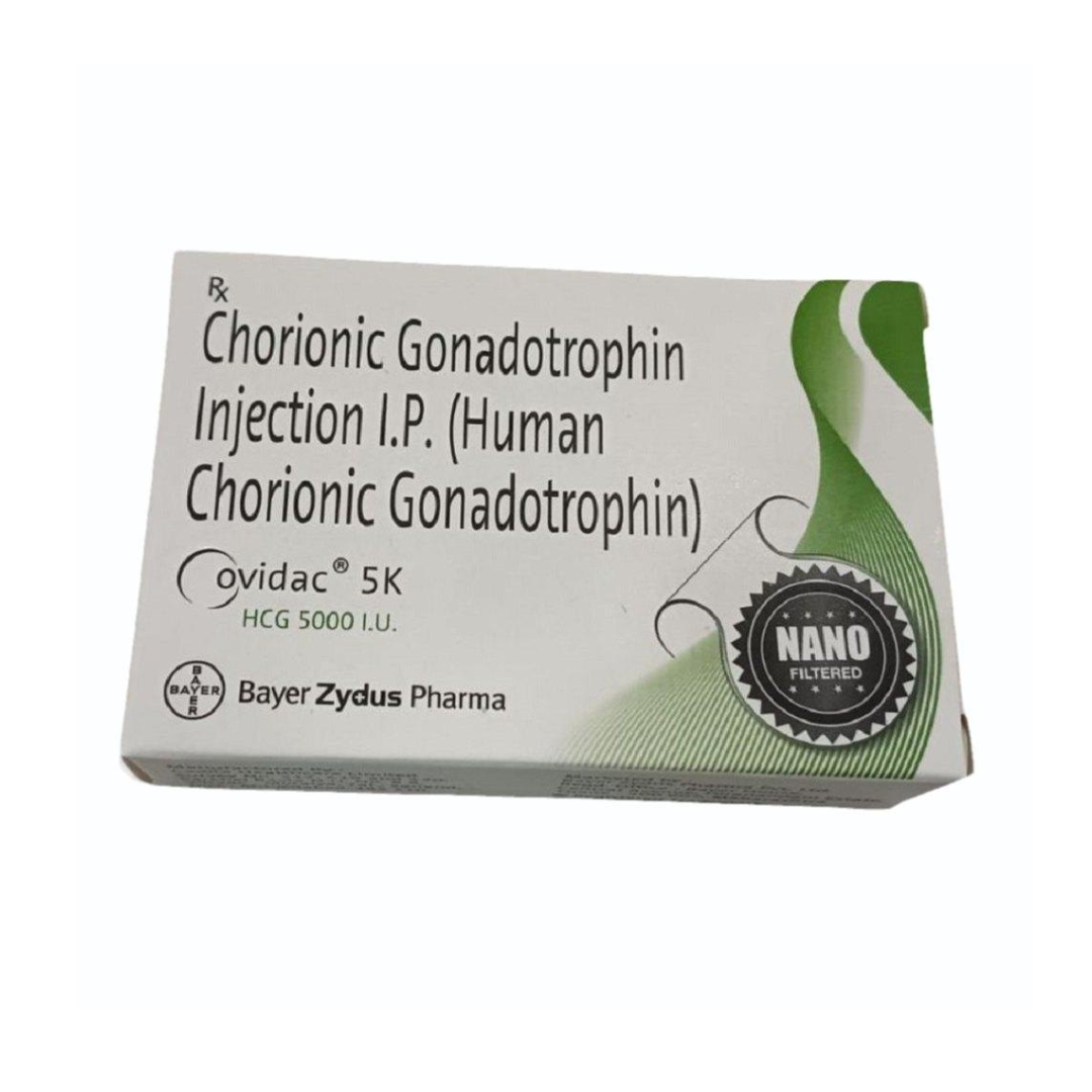 Ovidac 5K Injection is used in the treatment of infertility in women. It is also helpful in the treatment of male hypogonadism (delayed puberty, and low sperm count). It works by releasing the eggs from the ovary in women and by increasing the testosterone level in men.
