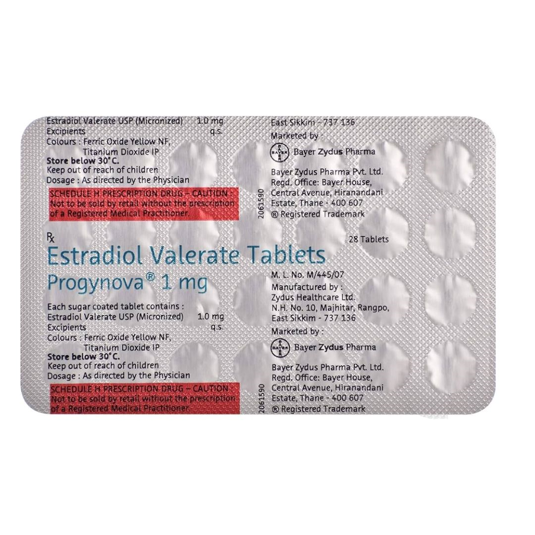 Progynova 1mg Tablet is a synthetic form of the female hormone estrogen, primarily used in hormone replacement therapy (HRT). It helps to manage symptoms of menopause, including hot flashes, vaginal dryness, and itching. Additionally, it aids in addressing estrogen deficiency and osteoporosis (thinning bones).