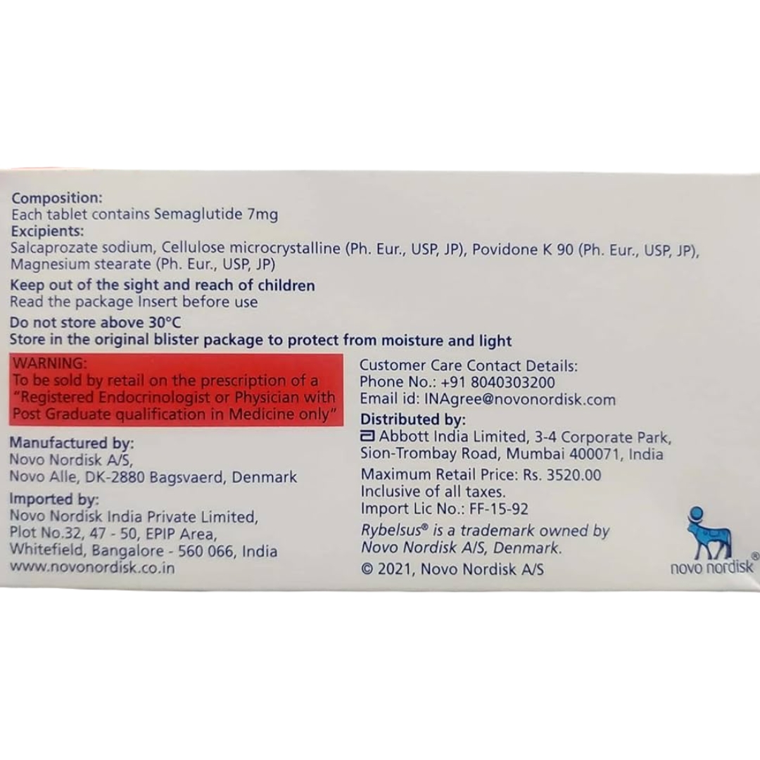 - Rybelsus 7mg Tablet is a medication prescribed to help adults with type 2 diabetes manage their blood sugar levels. –It works by stimulating the release of insulin when needed, inhibiting the liver’s production of excess sugar, and slowing the digestion of food.