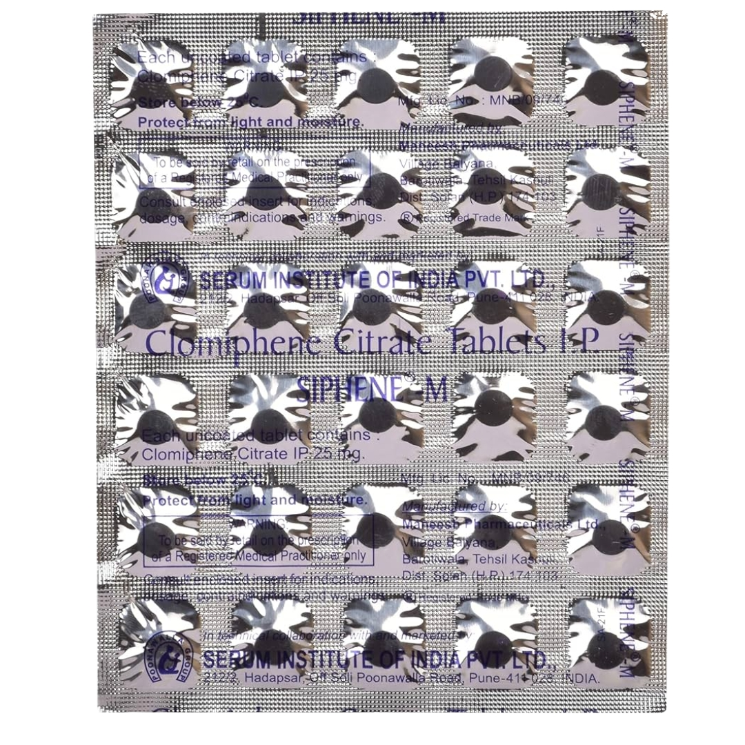 Siphene-M Tablet is a medication used to address female infertility, particularly in women who have difficulty conceiving due to ovulation issues or polycystic ovary syndrome (PCOS).