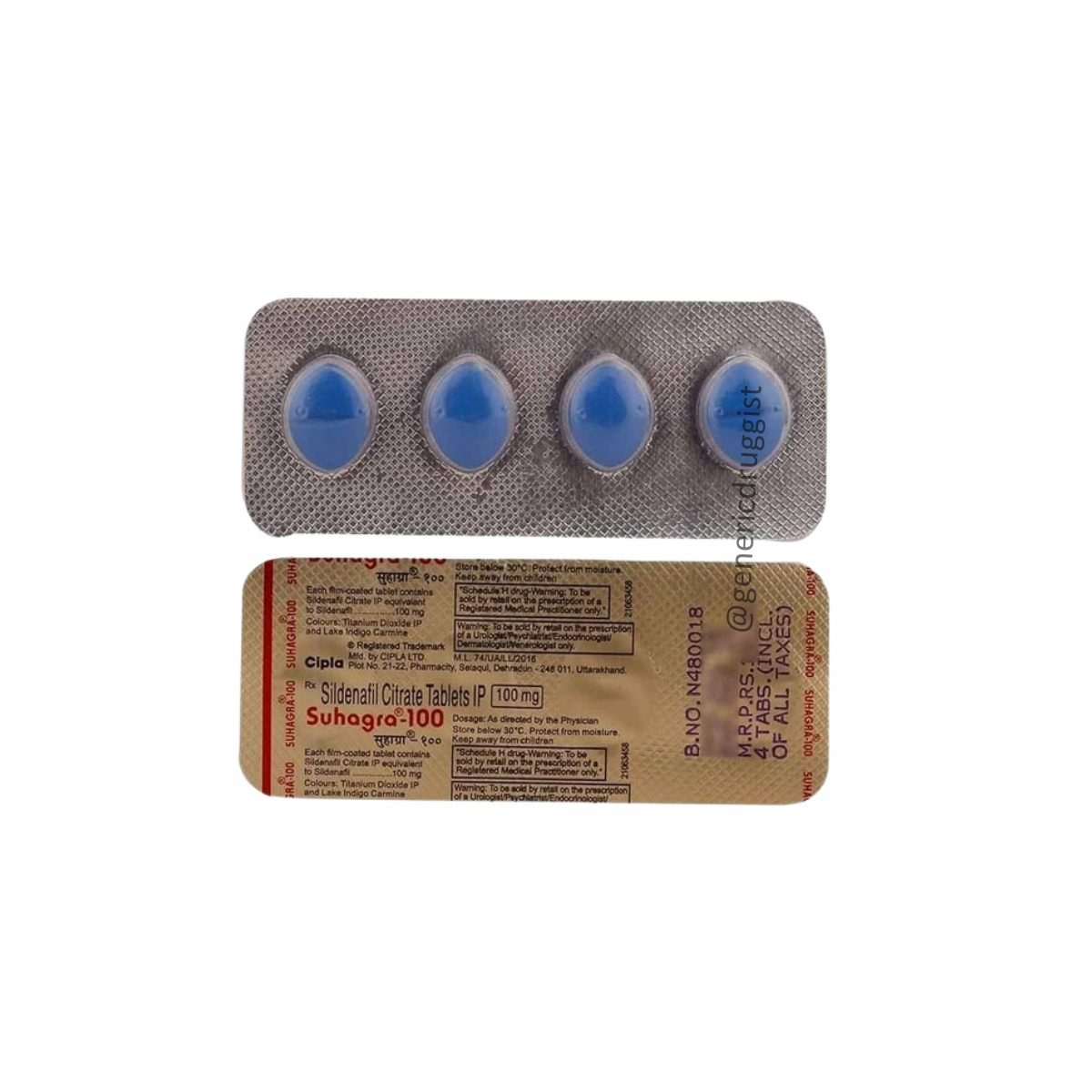 • Suhagra 100mg Tablet is a prescription medication used to treat erectile dysfunction (ED) in men by enhancing blood flow to the penis, which helps achieve and maintain an erection during sexual stimulation. It belongs to a group of drugs known as phosphodiesterase type 5 (PDE5) inhibitors.
