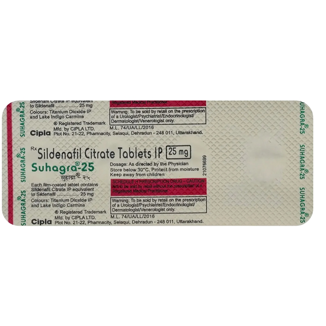 - Suhagra 25mg Tablet is a prescription medication used to treat erectile dysfunction (ED) in men by enhancing blood flow to the penis, which helps achieve and maintain an erection during sexual stimulation. It belongs to a group of drugs known as phosphodiesterase type 5 (PDE5) inhibitors.