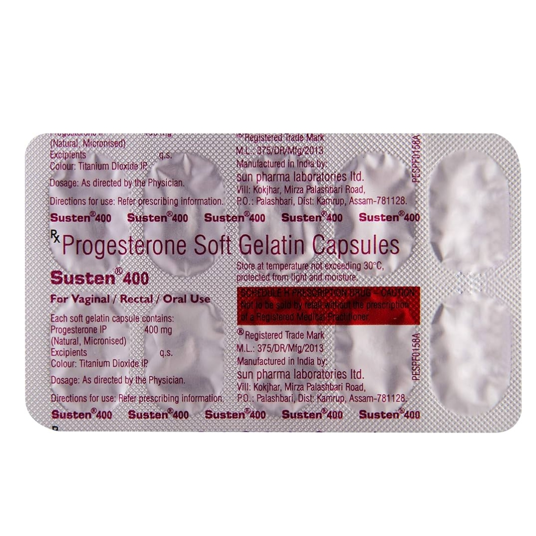 - Susten 400 Soft Gelatin Capsule contains natural, micronized progesterone, which enhances its absorption in the body.