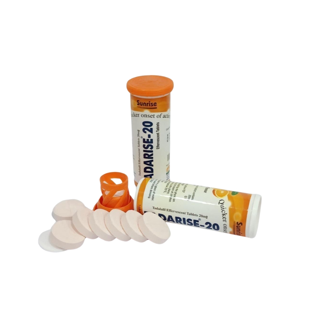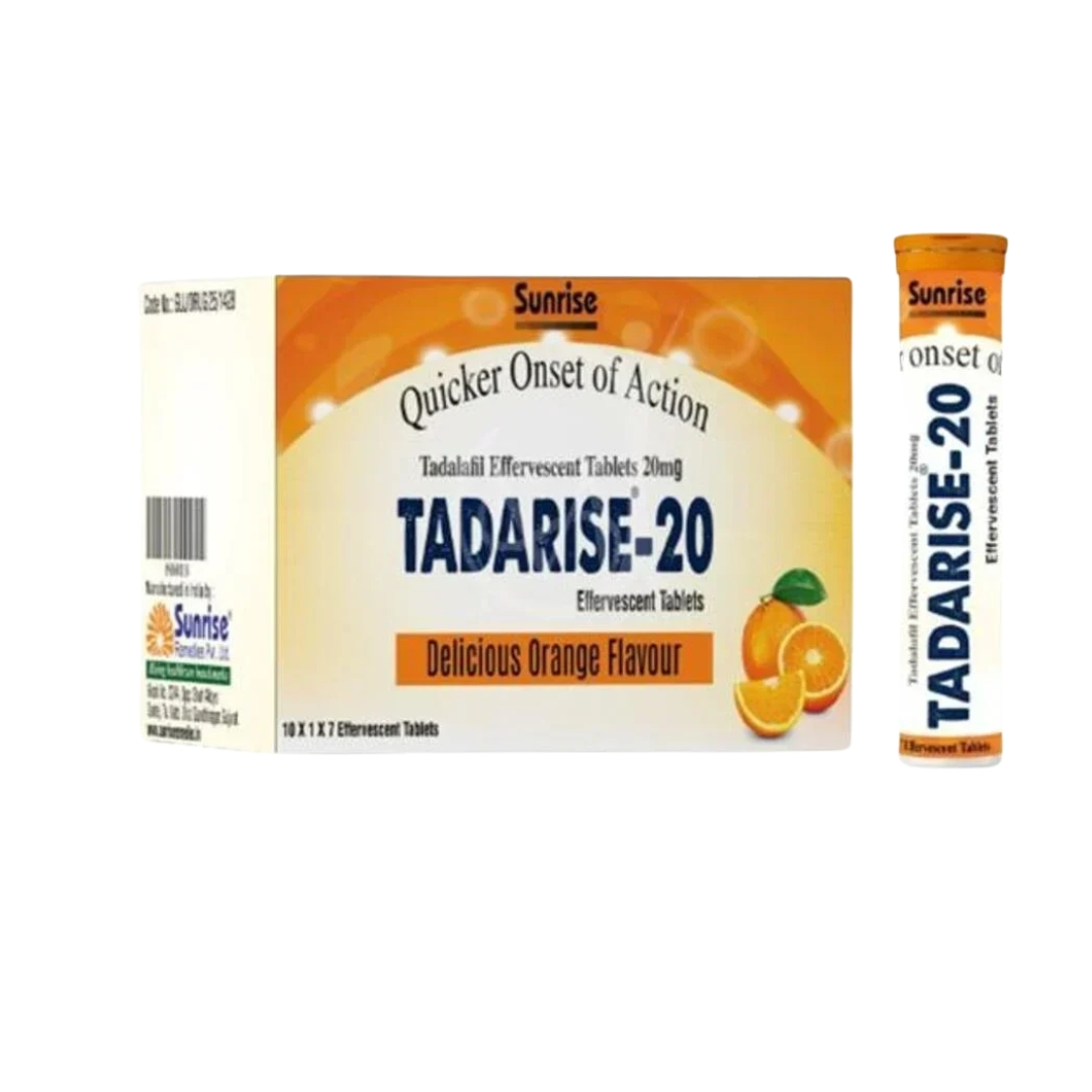 • Tadarise Effervescent Tablet, containing the active ingredient Tadalafil, is a high-strength prescription medication for erectile dysfunction. It should only be used under the supervision of a licensed healthcare provider.
