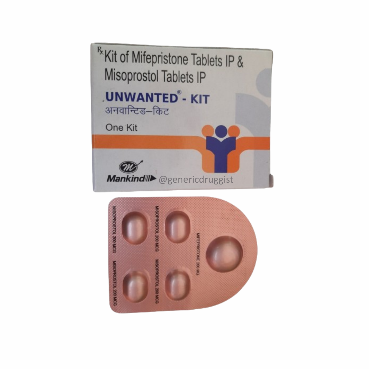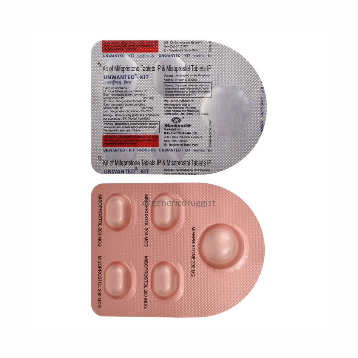 Unwanted Kit is a combination of two medicines, which is used for medical abortion (terminating a pregnancy). This medicine blocks the action of progesterone, a female hormone required to maintain pregnancy and induce contractions in the uterus, which further helps in abortion.